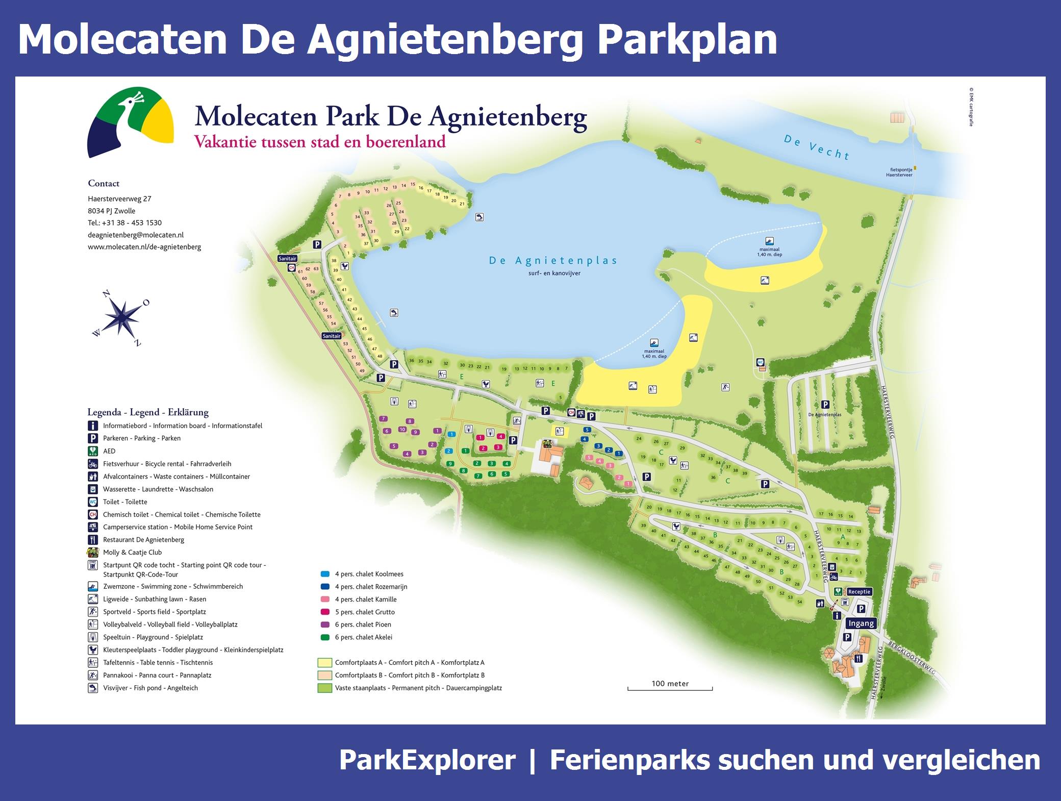Aktueller und übersichtlicher Parkplan von Molecaten De Agnietenberg mit alle Unterkünfte und Einrichtungen, auch als PDF herunterladbar.