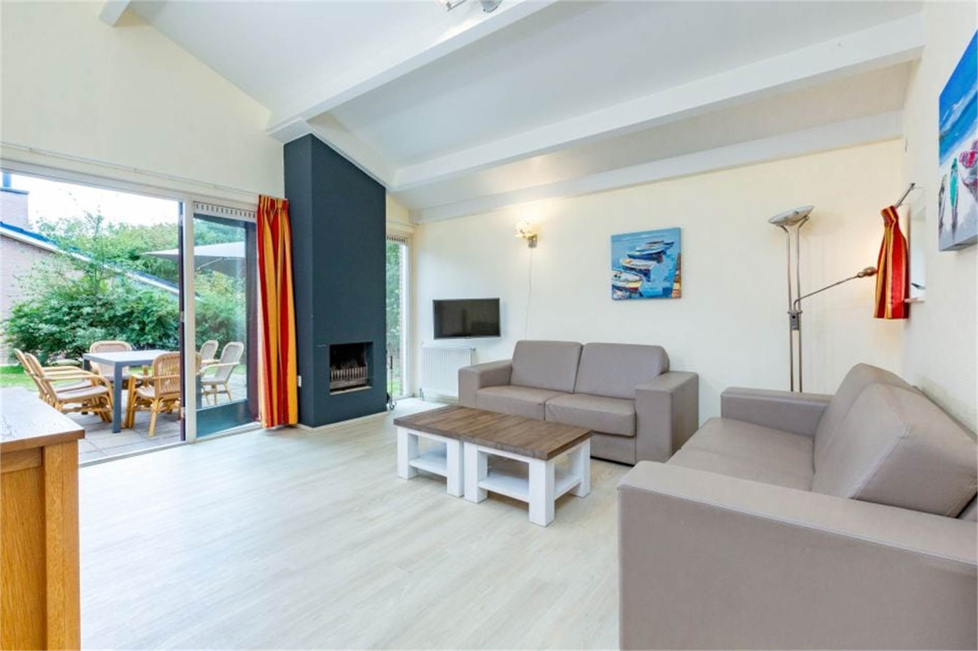 Diese restylte, ebenerdige Dünenvilla eignet sich für 6 Personen. Das Wohnzimmer bietet eine separate Sitzecke mit offenem Kamin. Die offene Küche ist u. a. mit Kombi-Mikrowelle, Geschirrspüler und Kaffeepadmaschine ausgestattet. Außerdem gibt es drei Schlafzimmer mit Einzel-Boxspringbetten, ein Badezimmer mit Dusche, eine separate Toilette und einen Garten mit Gartenmöbeln. Die Nutzung von WiFi ist gratis.
